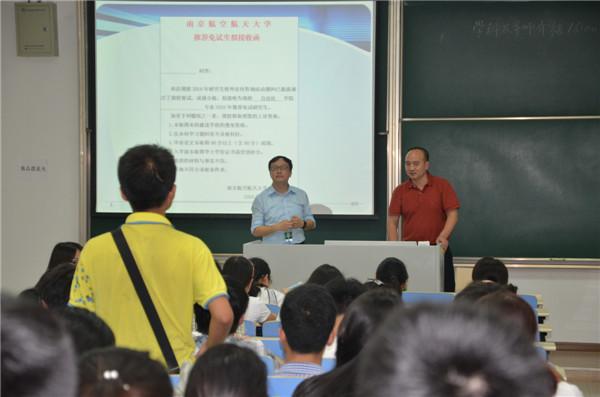 7月1日下午3点,我院2015年优秀生考核政策宣讲会在江宁校区D2302教室召开。学院党委书记刘建成,副院长赖际舟,测试工程系副主任徐贵力,院教学办主任、研究生教务员、辅导员参会。 赖际舟首先介绍了学院基本情况,然后向各位本科生介绍了《伟德国际1946源自英国2016年综合考核选拔优秀应届本科毕业生攻读硕士学位研究生办法》,并表示欢迎同学们积极报考伟德国际1946源自英国研究生。 刘建成强调,伟德国际1946源自英国的师资力量,教学、科研条件,人才培养模式等方面在南航处于领先水平,他鼓励同学们抓住机会参加优秀生考核,欢迎大家加入伟德国际1946源自英国大家庭。