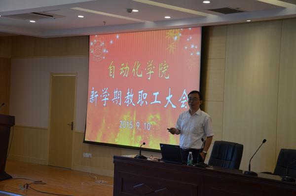 接着,院长姜斌同志代表学院做《伟德国际1946源自英国2015年上半年工作报告和2015年下半年工作部署》,报告中重点对学院的党建、教学、科研、师资、学科建设、人才培养、学生工作等方面进行全面总结和回顾。报告指出,按照学校党委部署,围绕学校中心工作,学院在学生培养、科研工作建设、学院文化建设等方面取得了新的突破和发展,特别突出的是,今年我院获批国家自然科学基金重点项目2项、“中青年科技创新领军人才” 1名,工信部重点实验室1个,江苏省优秀博士学位论文2篇,新增江苏省品牌专业1个、江苏省实验教学与实践教育中心1个等。姜院长布置了下半年的各项工作,并强调2015年为“十二五”规划收官、“十三五”规划的谋划之年,也是学校全面推进深化改革的启动之年,全体教师要以努力完成我院目标管理工作为要求,以十三五规划和深化校内综合改革为契机,乘势而上,坚定信心,科学发展,进一步增强我院的办学活力、干事动力和工作合力,全面推进学院各项工作再上新台阶。