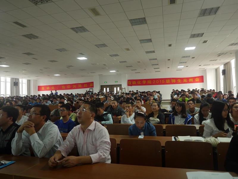2015年10月16日下午4点,我院在D1213举办2015级新生师生见面会,学院党政领导、学院办公室相关本科教育老师、各系主任和各班班主任出席,学院党委副书记沈伯秀主持会议,2015级近600名新生参加了本次师生见面会。
