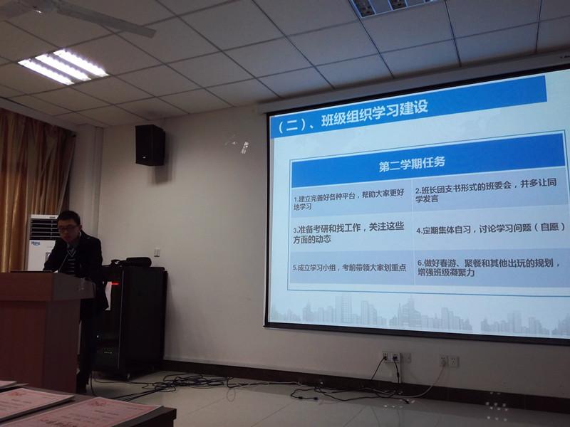本次会议围绕班级上学期总结、假期同学动态、目前班级情况、下学期展望等四个方向展开。上一学期年级整体补考率较高,平均绩点有所下滑,各班级均根据自身情况进行总结:往届延长学年学生影响,本身课程难度较大,一部分同学学习热情不高、学习态度存在问题……各班级情况不一,同学们在开学后正在认真准备补考,各班级整体迎考氛围较佳。假期同学们的动态较为丰富,多数同学在家陪伴父母,也有部分同学参与实习甚至开始考研准备、申请出国的语言考试等。在班级目前情况与下学期展望中,各班级不同程度的进行了初步的就业意向调研,拟建立面向就业、考研、出国等不同方向的同学建立不同的服务渠道和沟通平台;将着重开展“一对一”帮扶活动,旨在帮助一部分成绩落后同学顺利升入大四。