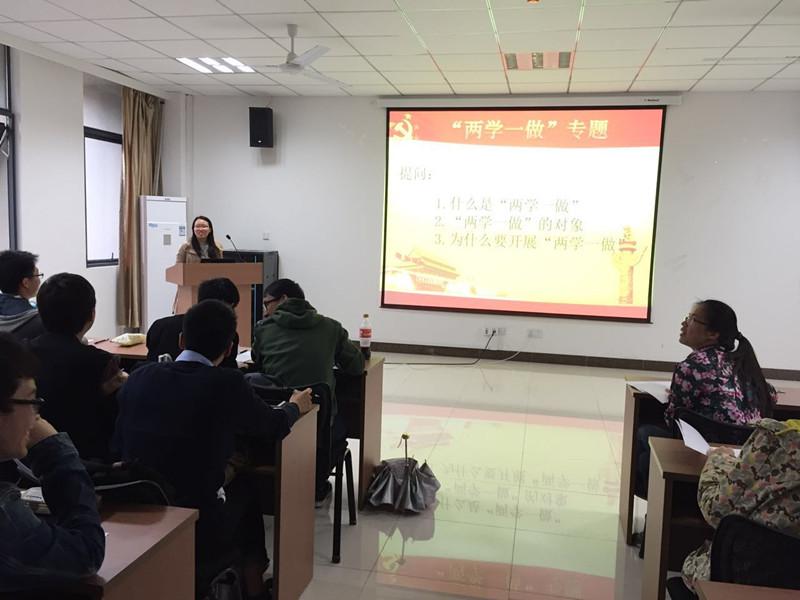 本次分享会由张竹昕主持,她首先简要介绍了“两学一做”开展的目的:贯彻习近平总书记系列重要讲话精神,推动全面从严治党向基层延伸,巩固拓展党的群众路线教育实践活动和“三严三实”专题教育成果,进一步解决党员队伍在思想、组织、作风、纪律等方面存在的问题,保持发展党的先进性和纯洁性。接着,部分党员就自己会前党章党规、习近平总书记的系列讲话的学习成果分享自己所理解的“两学一做”。