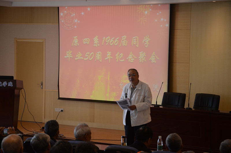 沈伯秀副书记介绍了学院出席此次聚会庆典的有关领导和老师,活动在热烈的气氛开始。随后学院党委书记刘建成代表全院教职员工对各位老校友回母校聚会表达了热烈的欢迎、诚挚的谢意和美好的祝福!赖际舟副院长向老校友们详细介绍了学校的情况和学院的发展历程、人才培养、科学研究、社会服务等各方面所取得的成果,再次表达了后辈对老校友的感激之情。