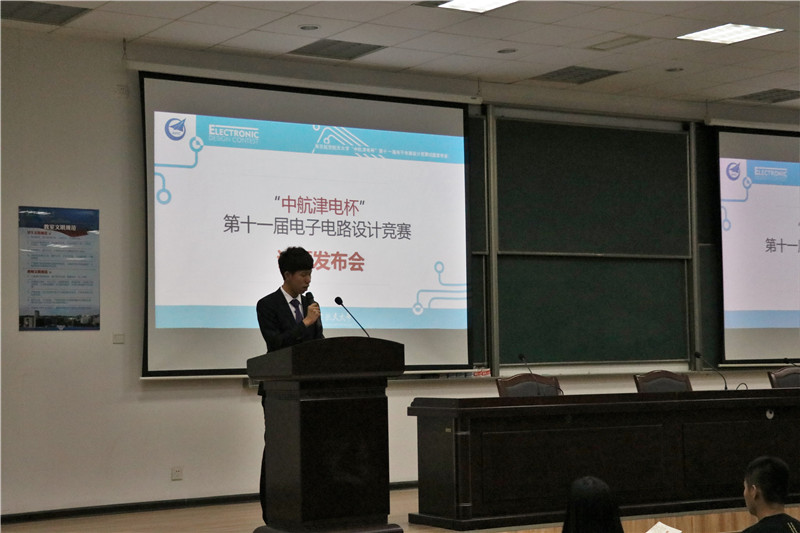 试题发布会由本届竞赛的出题组组长解放军理工大学的潘克修教授为大家发布并讲解本届试题。本届竞赛试题共8题,其中2题为中航工业天津航空机电有限公司命题,2题为校外专家命题,3题为校内教师命题,1题为学生命题,8题中高级组共6题,初级组共2题。潘克修教授连续多年为伟德国际1946源自英国电子电路设计竞赛出题、审核、校对,经验丰富。他深入浅出、幽默风趣的为同学们讲解了出题理念、解题要求和技巧,为参赛选手开启了思路;他鼓励大学生们乐于创新、甘于钻研,将科创视为毕生追求。试题发布会上,参与初级组命题的伟德国际1946源自英国伟德国际1946源自英国大三学生姚恺奇,以90后学生视角现场介绍汉诺塔游戏机试题设计的初衷及细节,他曾获得第九届和第十届电子电路设计竞赛一等奖并斩获国家级、省级赛事奖项。