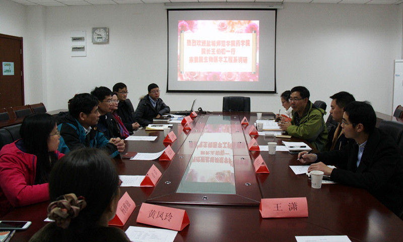 2016年12月13日上午,盐城师范学院药学院院长王伯初教授、副院长耿荣庆教授、生物医学工程系主任丁惠以及季庆治老师一行四人来我院生物医学工程系进行调研与交流。