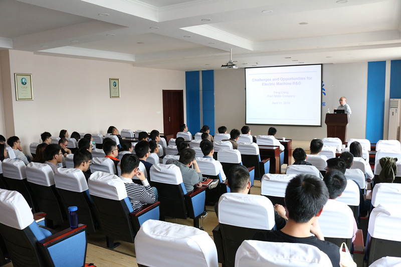 4月11日, Liang Feng博士在伟德国际1946源自英国3号楼报告厅做“Challenges and Opportunities for Electric Machine R&D”学术报告,伟德国际1946源自英国近百名师生参加了报告会。报告从新能源汽车驱动电机的基本原理、特性和要求出发,分析新能源汽车驱动电机的转矩-功率特性,提炼出新能源汽车驱动永磁电机的高效率、转矩密度提升及振动噪声等核心问题,并介绍了福特公司研发团队在效率提升及转矩脉动抑制等领域取得的诸多研究成果和创新思想。报告会持续3个多小时,极大拓宽了师生对于新能源汽车驱动系统的认识和视野。