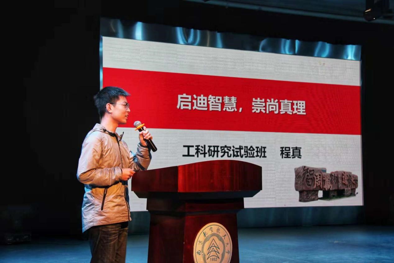 “启迪智慧,崇尚真理”——2017-2018学年年度特别嘉奖之笃学奖获得者程真从学习的角度出发,针对大一至 大四不同学年的教学节奏与课程特点提出了富有针对性的学习建议。同时,通过总结竞赛活动的时间线,结合自身参加竞赛的经历,鼓励同学们努力挑战自己、超越自己。