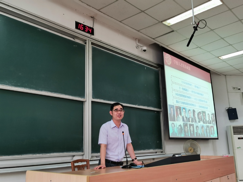随后,学院副院长宋晓峰教授在学业和科研方面对新生提出了几点希望。第一,他提醒同学们研究生的学习阶段会遇到很多困难,要做好面对困难的准备。第二,他希望同学们充分挖掘自己的能力、塑造自己的价值,在研究生生涯中多与老师沟通,做到先认识自我,再提高自我。第二,他希望同学们能养成独立思考和分辨是非的能力,在信息多元的网络社会中,能有自己的认知。最后,宋院长祝福同学们在未来的科研过程中,能够走得更高更远。