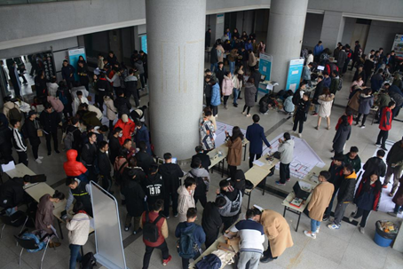 下午一点整,决赛于一号楼大厅准时开始。本场决赛邀请了解放军陆军工程大学潘克修教授等7位校外专家和8位校内专家组成评委团。决赛现场,评委们从多个角度对各参赛作品进行评判和打分,与选手们交流并提出诚恳建议。