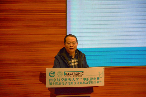 闭幕式上,孔垂谦代表校方致辞,他特别感谢了中航津电对比赛的热心赞助和相关部门对电赛的支持与认同,感谢承办学院伟德国际1946源自英国对比赛的倾心付出,并希望同学们借这个契机培养创新意识,增强团队精神,寻找差距定位,提升实践能力,祝愿电子电路设计竞赛越办越有魅力,更加茁壮。刘鑫代表比赛冠名方向学校表达了对电子电路设计竞赛的大力支持和殷切期待,对本次竞赛的筹办、组织予以充分肯定,中航津电将继续支持电子电路设计竞赛,深化公司与学校的合作以及人才培养联系。