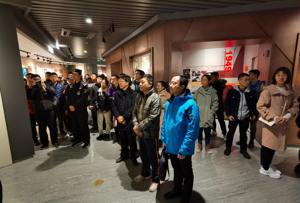 图1 自控系教师导航党小组、控制学科研究生第四党支部(导航方向)、学生安全服务中心党支部、机关保卫处党支部、艺术学院党支部共同参观江苏国家安全教育馆