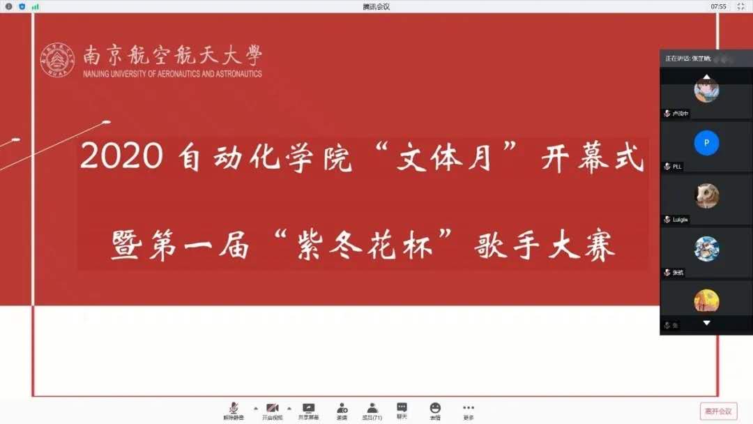 2020年6月6日下午15:00,伟德国际1946源自英国第十四届“文体月”开幕式暨第一届“紫冬花杯”歌手大赛初赛顺利举行。受疫情影响,本届“文体月”活动采取线上举办的方式。学院党委副书记张跃老师、院团委书记陈慧云老师、研究生辅导员汤呈懿和王明月老师、本科生辅导员汪明锐和宋欣老师作为嘉宾线上出席了本次开幕式。
